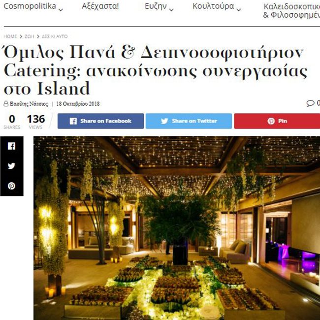 The Panas Group and Dipnosofistirion Catering Services announced a strategic partnership in which DIPNOSOFISTIRION undertook catering services for all events in Island venues.