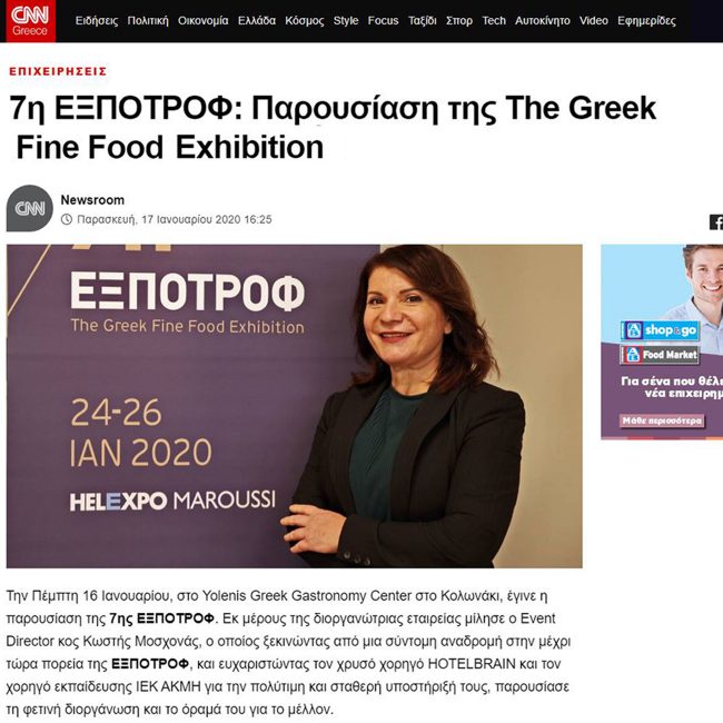 On January 2020 The Kompany was asked to organize the official presentation of the 7th EXPOTROF THE GREEK FINE FOOD EXHIBITION (with Crete as an honored region) to the press. It was the first time at the 7 years of EXPOTROF that a press conference was held to promote the actual event and it took place at a well-known Greek Gastronomy Center in Kolonaki a few days prior to the official opening of the exhibition.